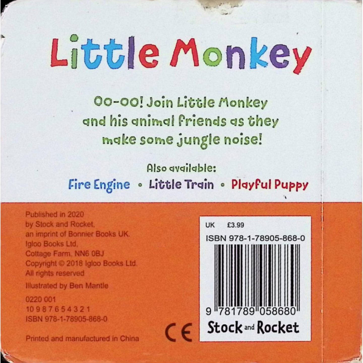适合02岁低幼儿童阅读 社出版 动物声音认知启蒙书帮助孩子学习动物名称叫声比较大 书LittleMonkey小猴子绘本由冰屋出版 英语原版