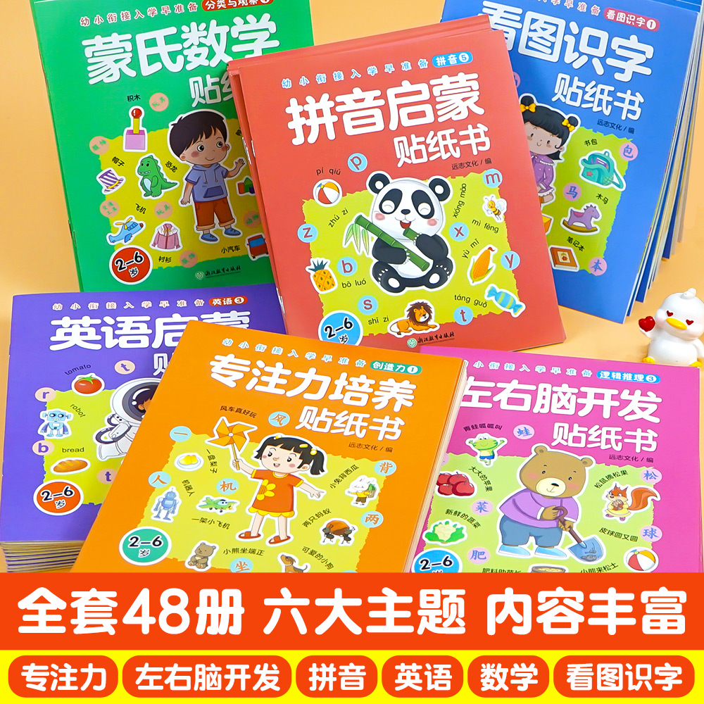 5岁 全脑开发贴纸书全套10册 贴贴画专注力儿童贴纸书3到6岁以上左右脑开发思维训练益智动手动脑粘贴画三岁宝宝书籍绘本幼儿园2