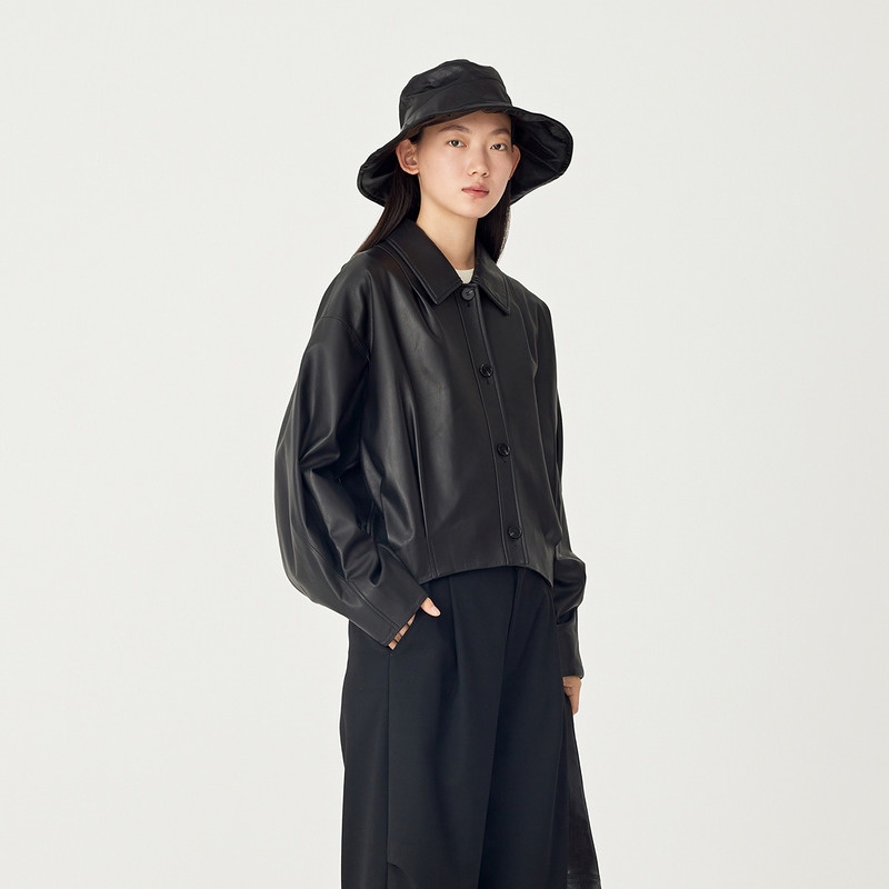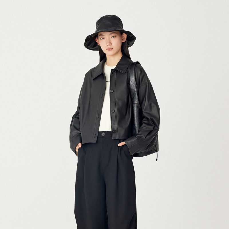 ICH 复古休闲夹克外套 MODE高级质感设计小众立领皮衣外套机车美式