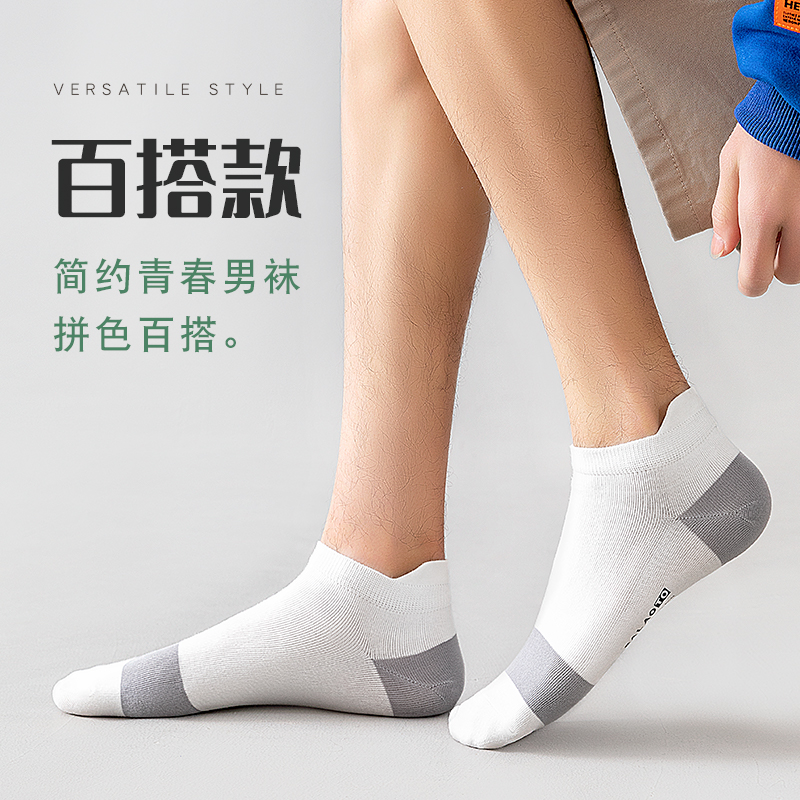 防臭吸汗男袜男生运动棉袜潮 船袜男款 白色袜子男短袜秋冬薄款 男士