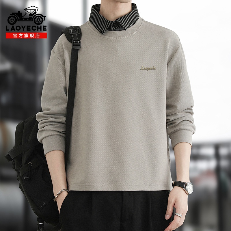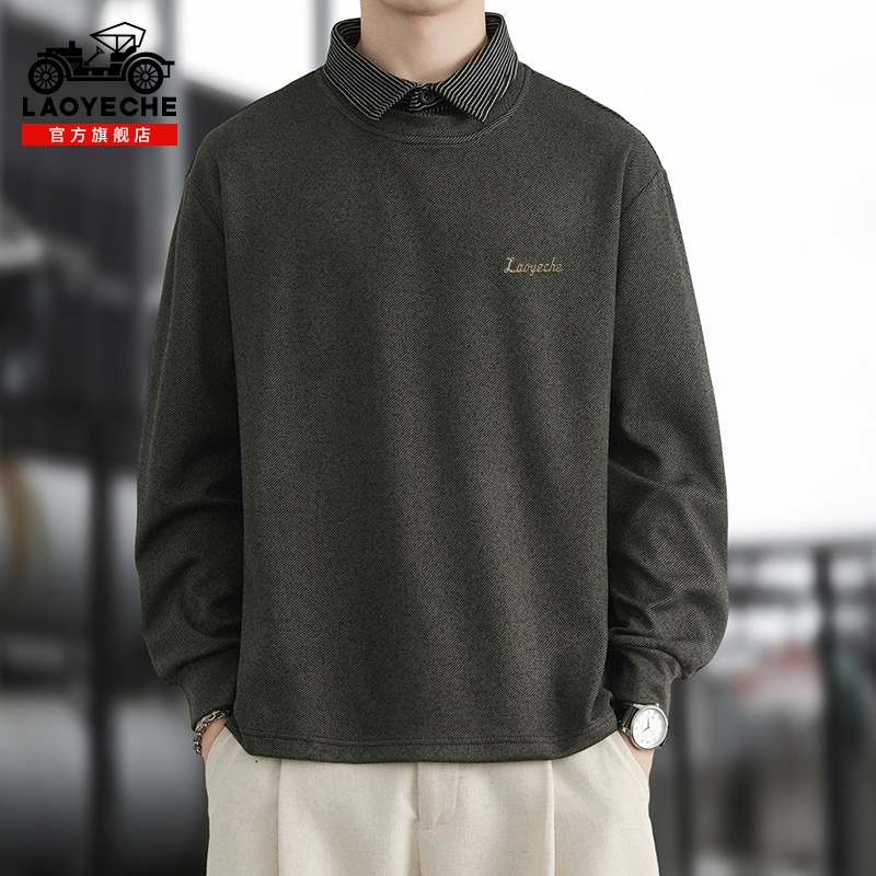 领打底衫 老爷车假两件长袖 衬衫 2025秋冬季 休闲卫衣男上衣 t恤男士