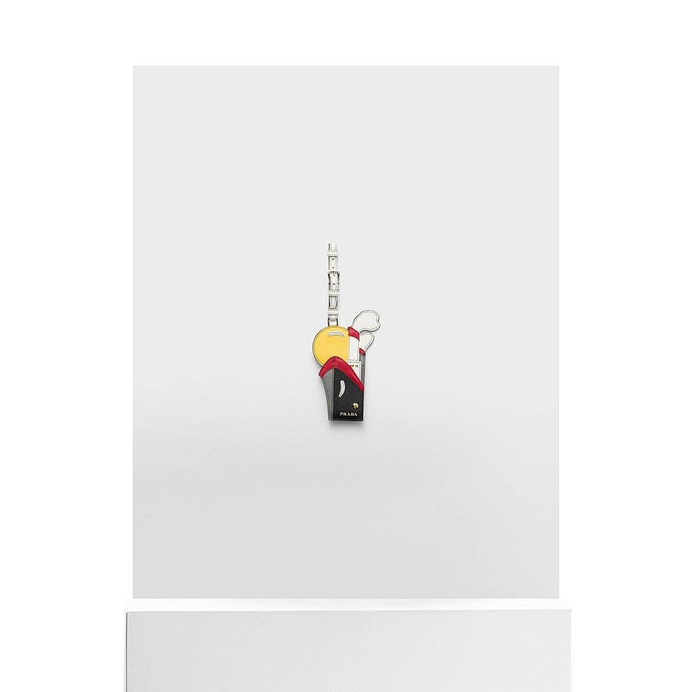 自营欧洲直邮Prada普拉达 黑色小牛皮字母标识姓名牌 Saffiano男士