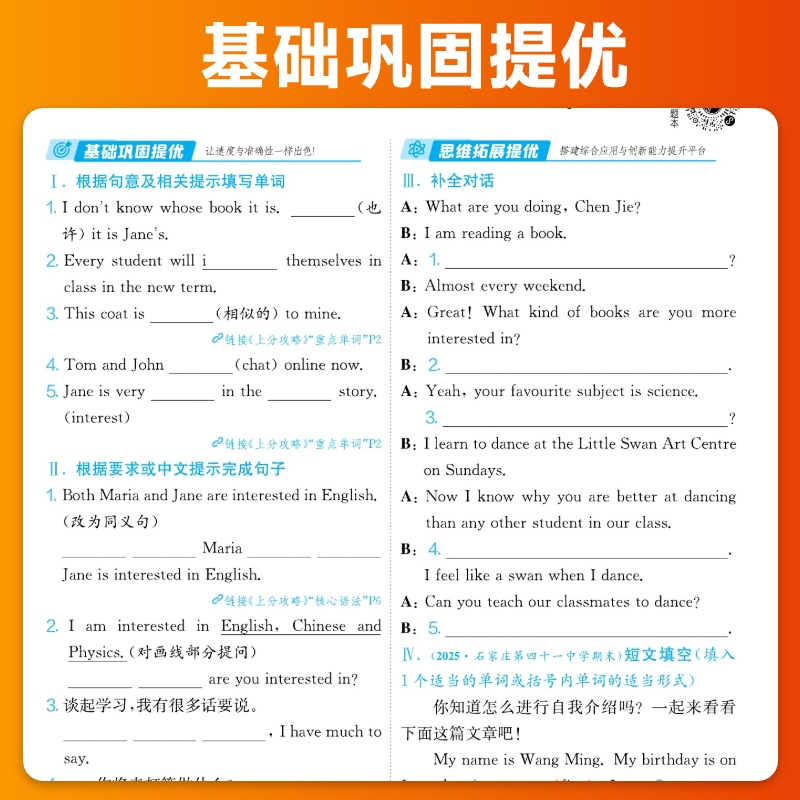 河北初一初二三同步训练习题册课时分层作业本单元 2025秋实验班提优训练七八九年级上册英语JJ冀教版 综合拓展春雨教育 英语 冀教版