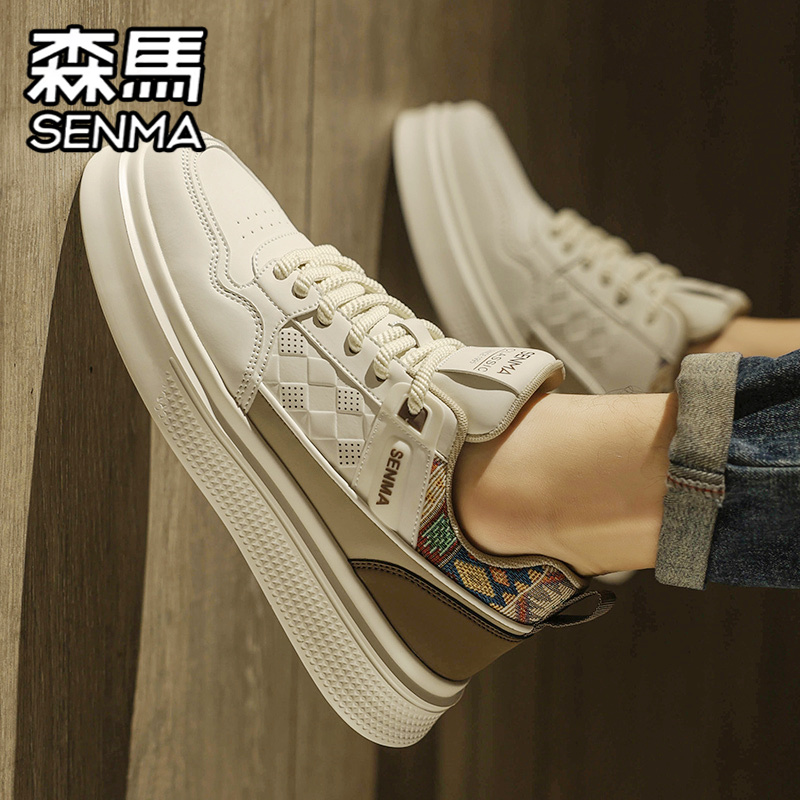 真皮百搭软底增高小白潮鞋 森马男鞋 运动休闲小众板鞋 秋季 2025新款