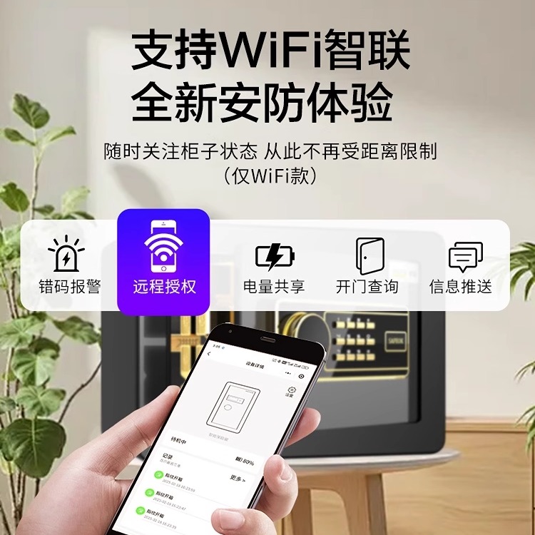 虎牌保险柜 升级 家用小型45 WiFi手机智能控制防盗办公夹万床头80保管箱2025新款 70CM指纹保险箱 新品