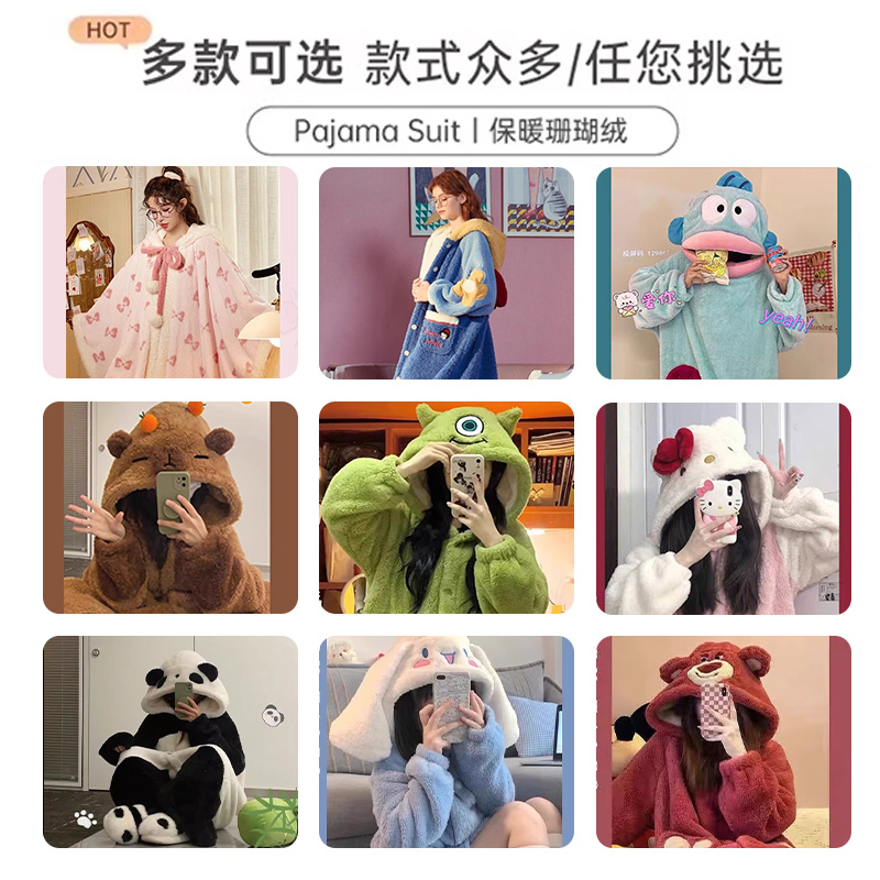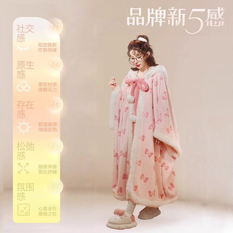斗篷保暖睡衣家居服 加绒加厚珊瑚绒长款 新款 卡通睡袍女可爱秋冬季
