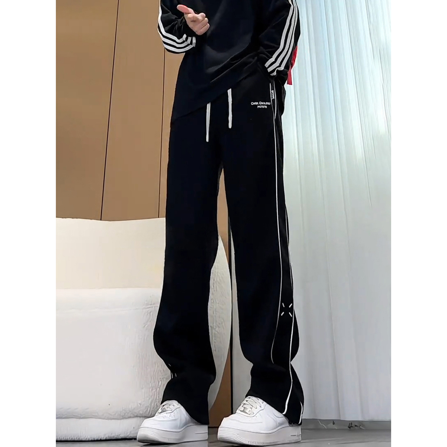 侧边条纹运动卫裤 子直筒垂感休闲裤 男款 青少年酷帅加长裤 秋季 美式