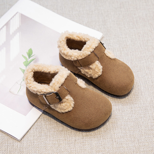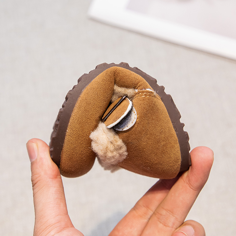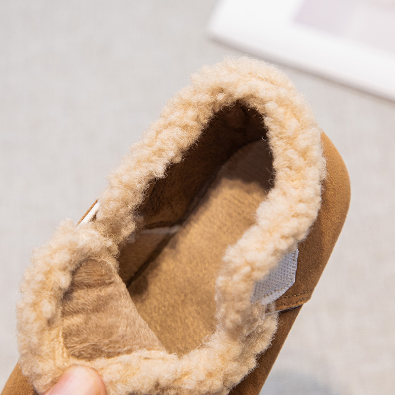 男童皮面防水小孩居家室内女童宝宝加绒保暖棉拖鞋 儿童棉鞋 秋冬季