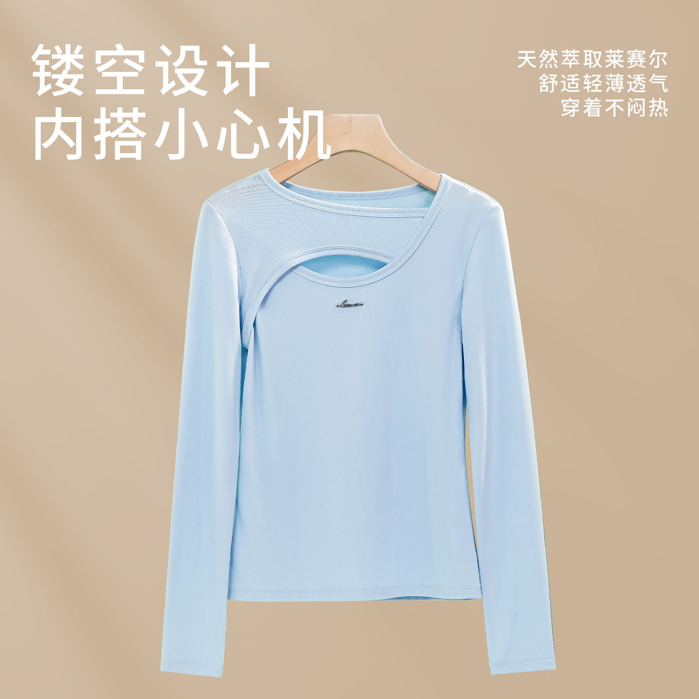 纯色百搭镂空设计上衣女生内搭可外穿2025新款 猫人女士长袖 打底衫