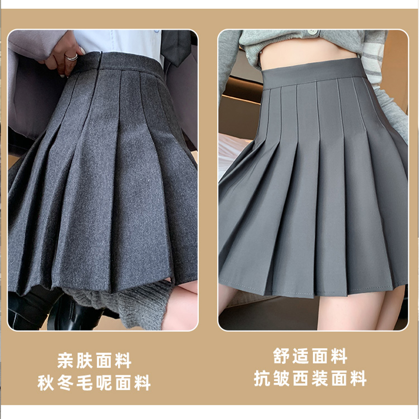 高腰显瘦a字裙百褶裙短裙 新款 omont蛋挞家 bella灰色半身裙子秋季