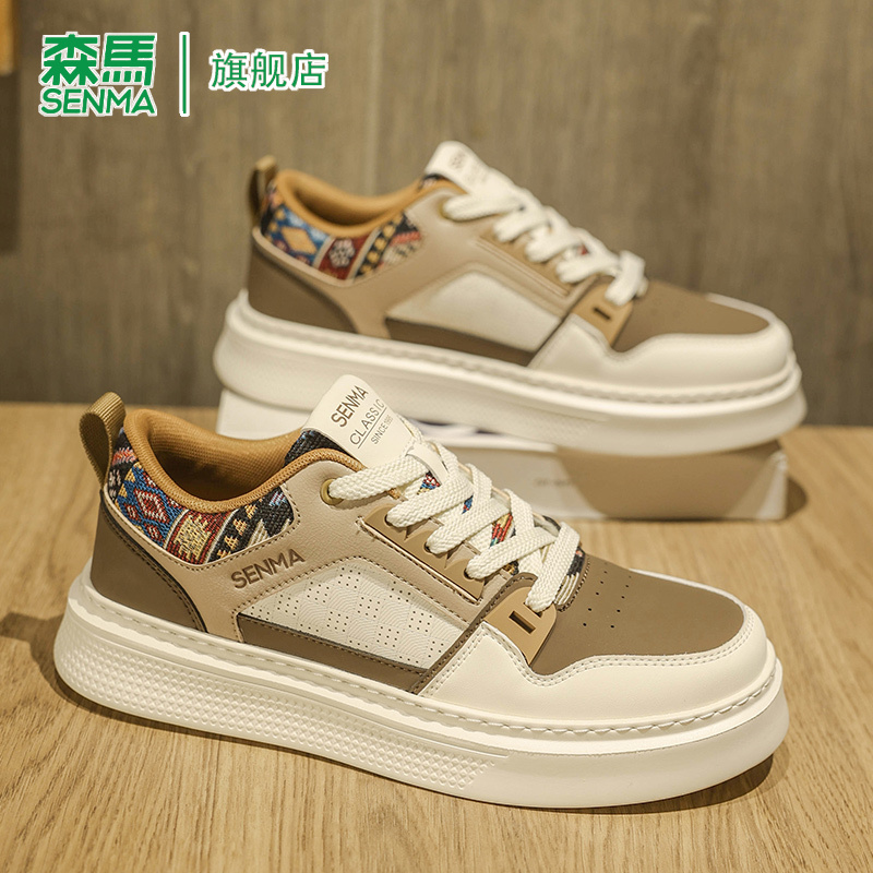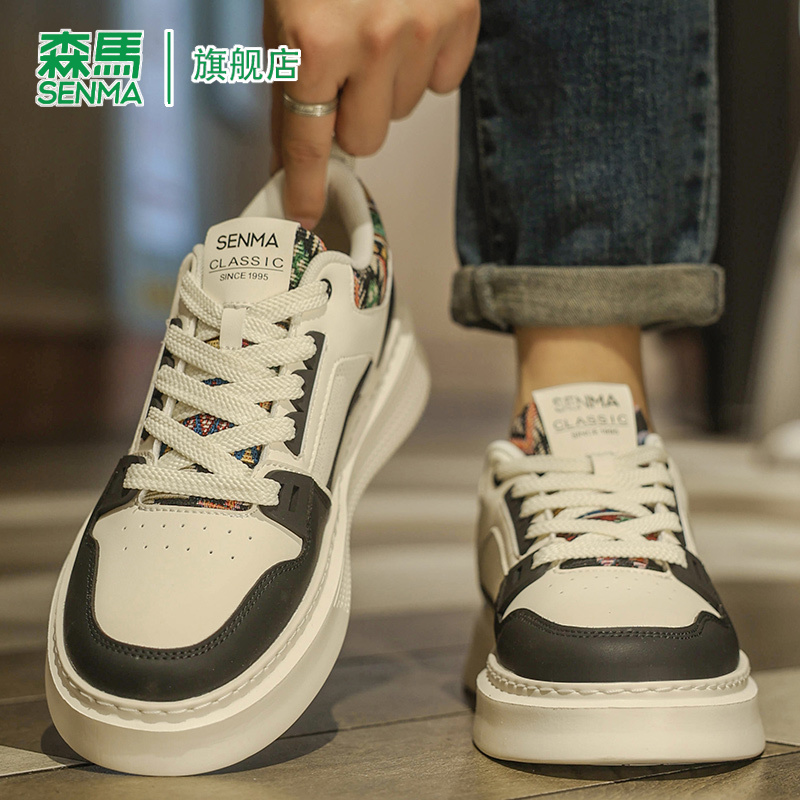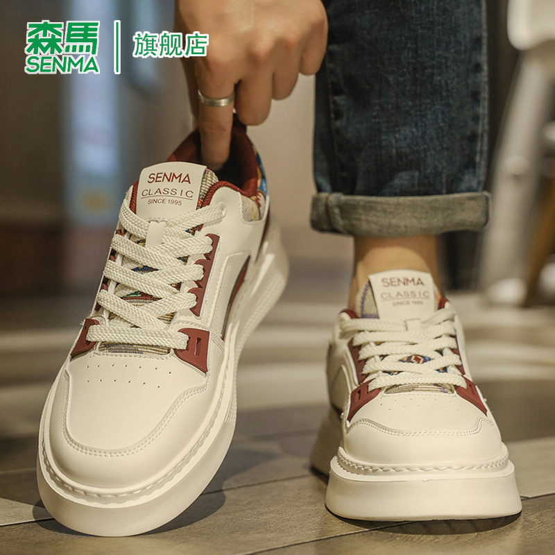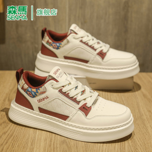 运动休闲板鞋 森马男鞋 耐磨防滑百搭时尚 厚底真皮轻便小白鞋 子 秋季