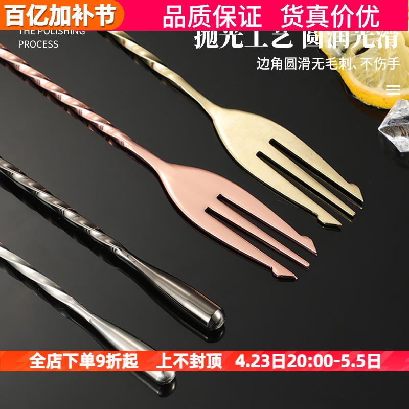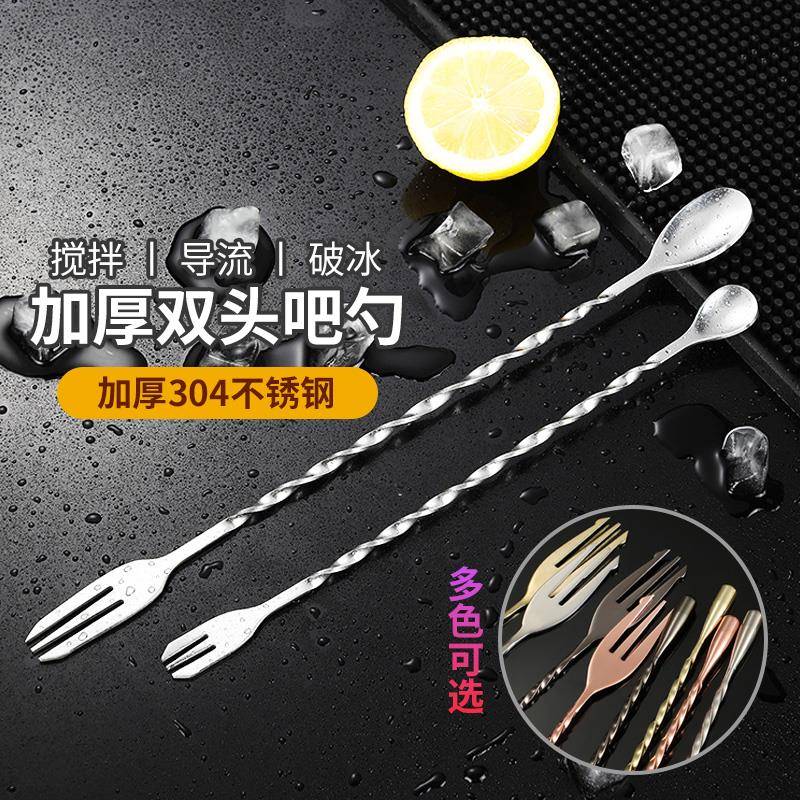吧台调酒勺搅拌棒 双头吧叉匙 咖啡奶茶店吧勺 不锈钢长吧勺日式