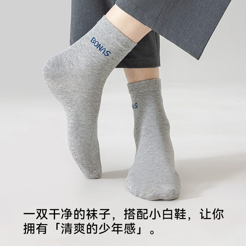 短袜黑白色抗菌防臭吸汗青少年运动长袜 中筒袜春秋季 袜子男款 男士