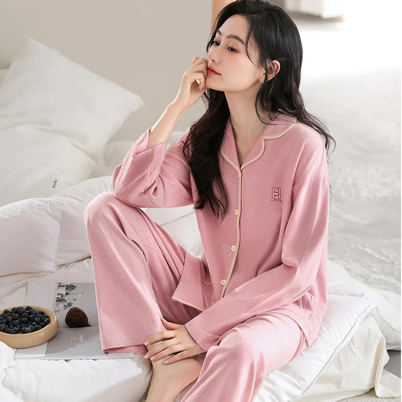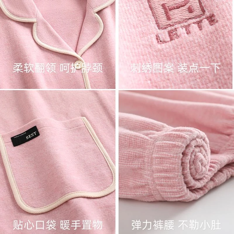 秋冬季 可外穿带胸垫家居服套装 女士睡衣开衫 长裤 翻领长袖 2025新品