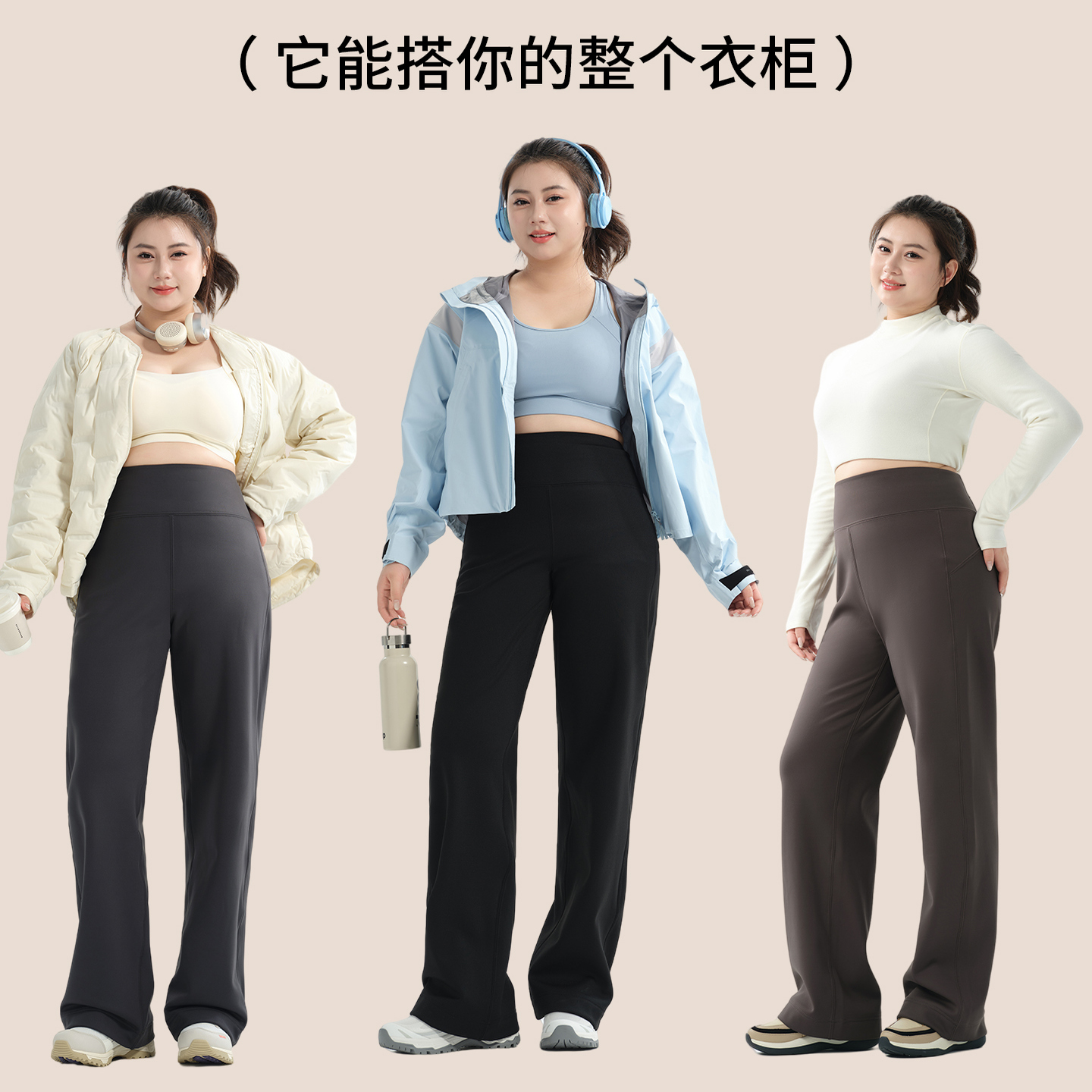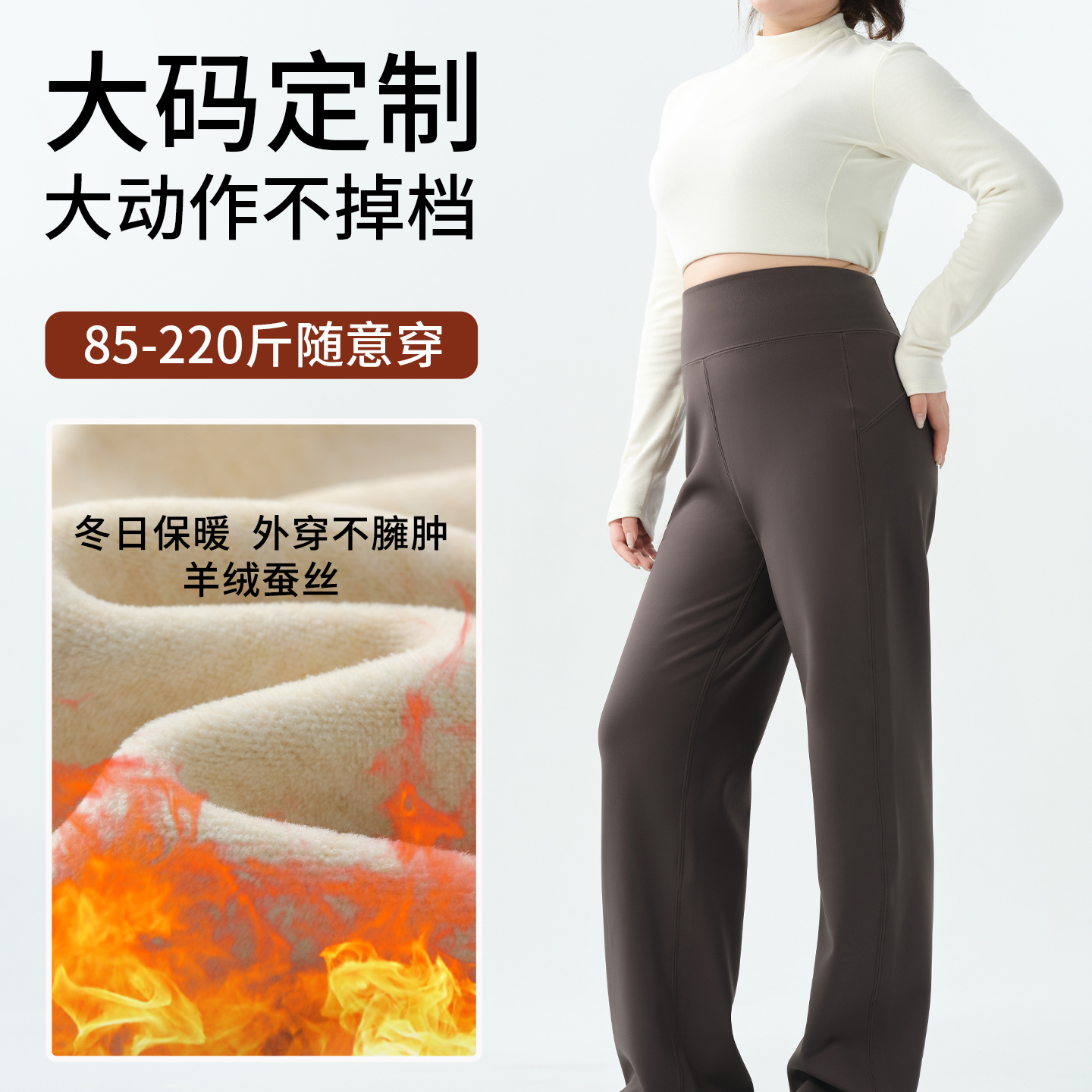 胖mm200斤健身宽松加绒运动阔腿裤 女2025新款 直筒瑜伽裤 羊绒大码