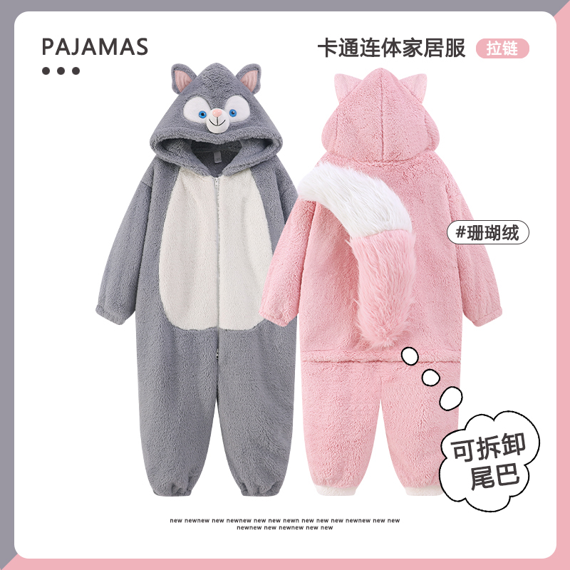 套装 加绒加厚长袖 保暖法兰绒外穿家居服 秋冬季 猫人珊瑚绒睡衣男士
