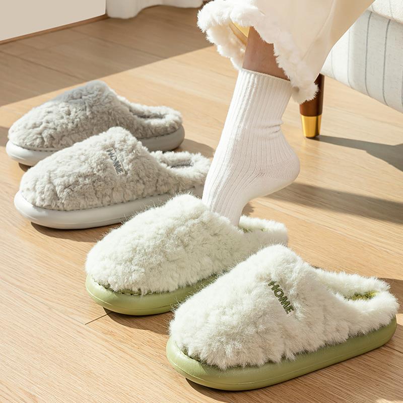 男防臭 室内家居家防滑厚底女士保暖情侣拖鞋 棉拖鞋 毛毛绒秋冬季