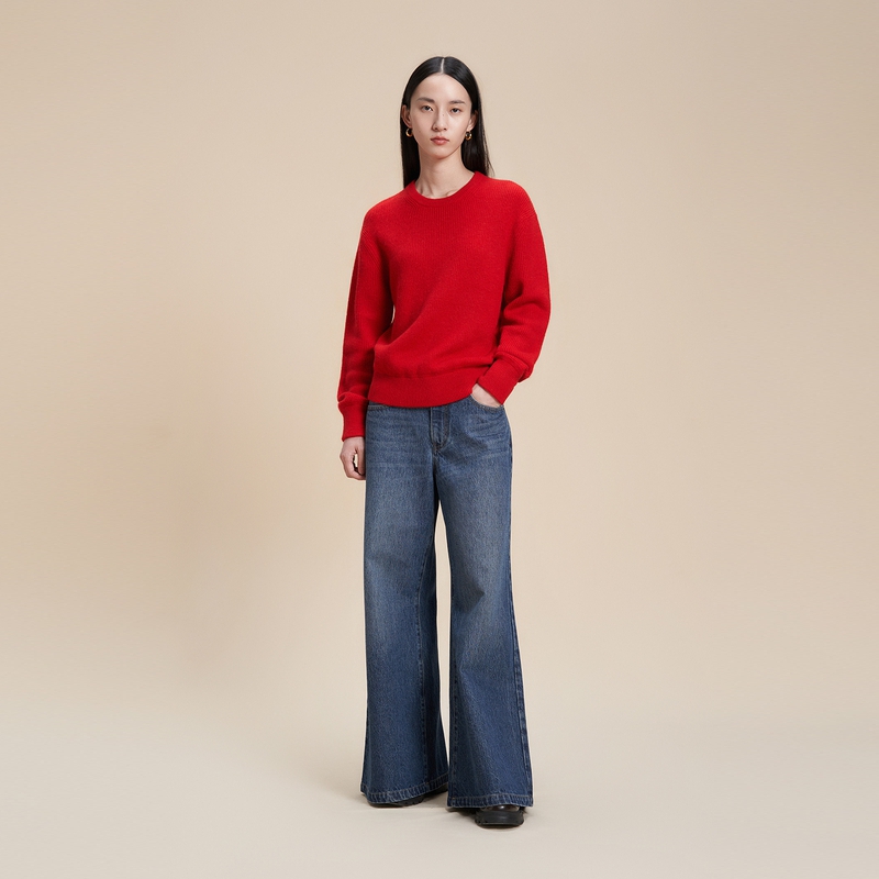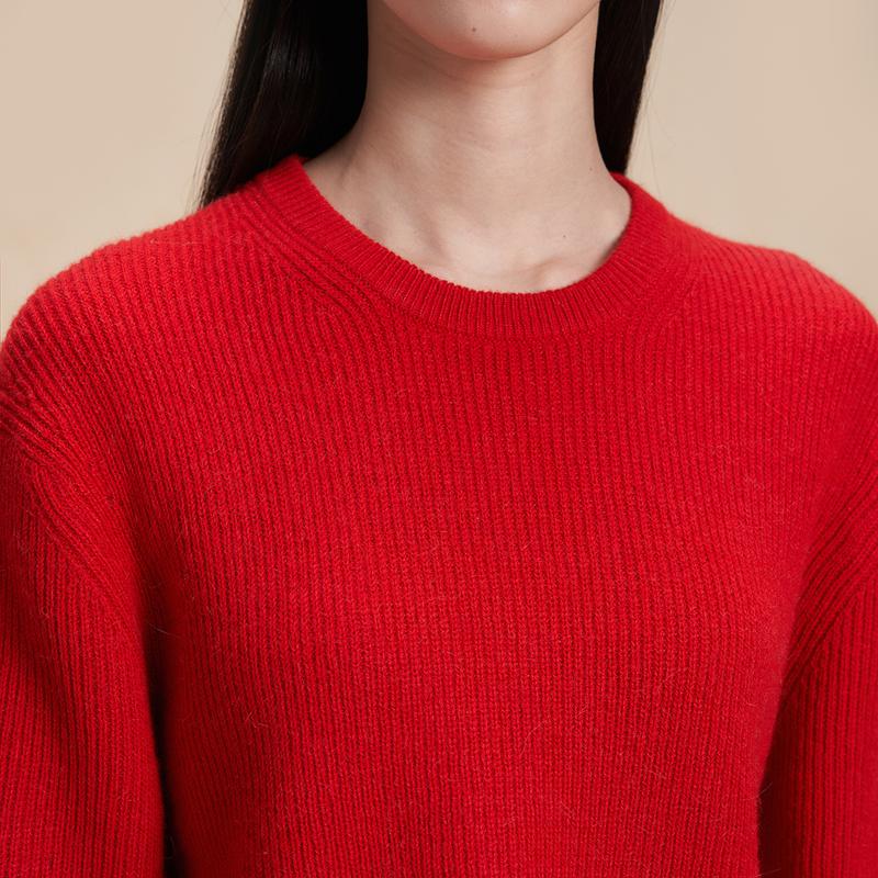 WHM 素然 25冬女士气质设计感羊驼毛针织圆领上衣 新品