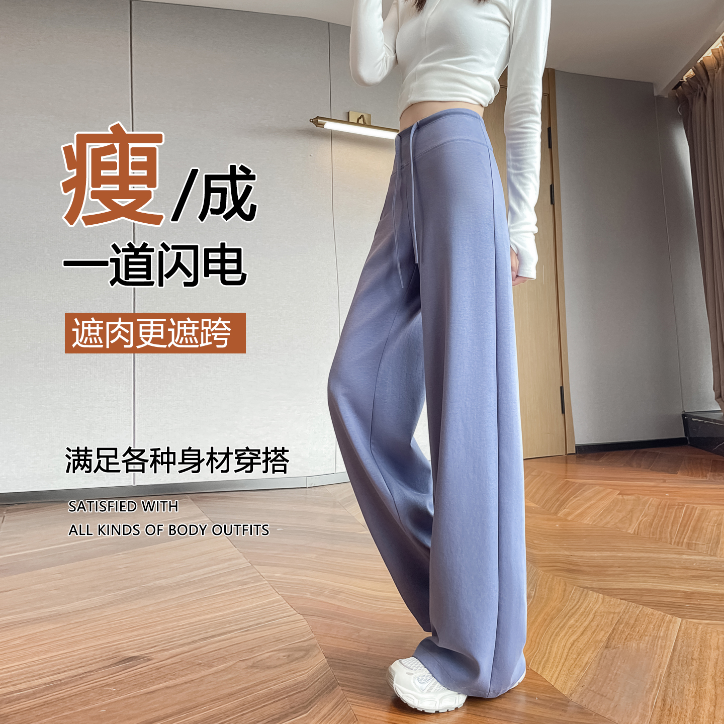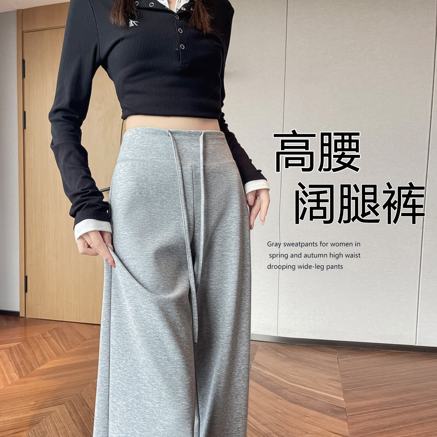 女春秋季 松弛感休闲健身瑜伽卫裤 高腰窄版 美式 子 阔腿裤 灰色运动裤