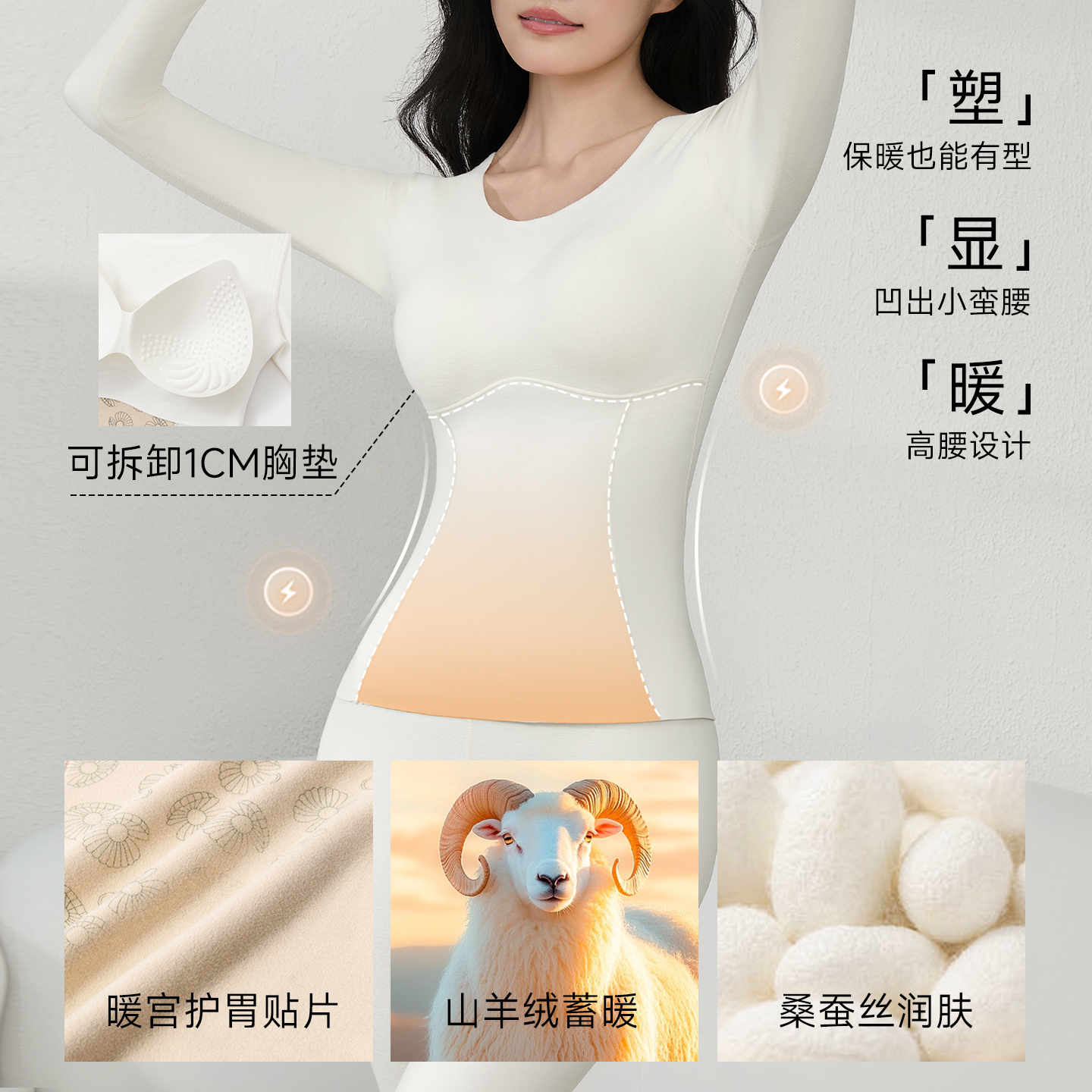 上衣打底套装 秋衣秋裤 带胸垫25新款 菇娘家德绒保暖发热内衣女大码