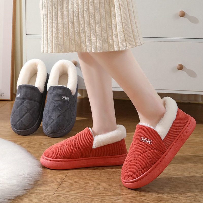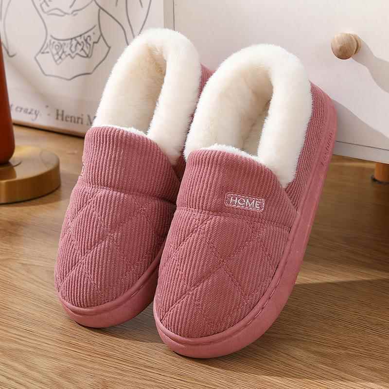 防滑家用加绒室内秋冬家居室内男保暖毛拖鞋 棉拖鞋 女包跟厚底冬季