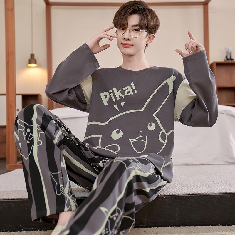 男生家居服套装 男士 青少年初中学生2024年新款 纯棉长袖 睡衣春秋款