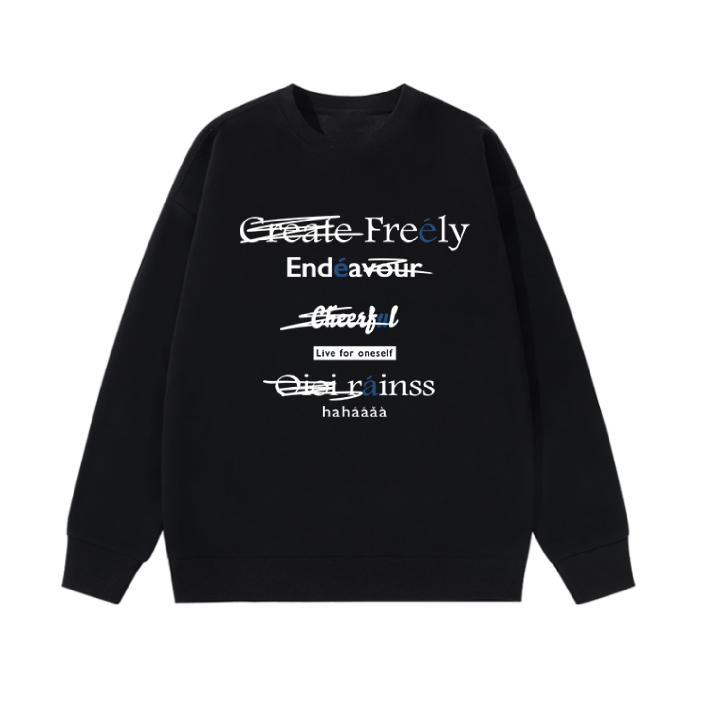 韩系重磅卫衣女圆领黑色2025新款 上衣 独特超好看慵懒风早秋小众款