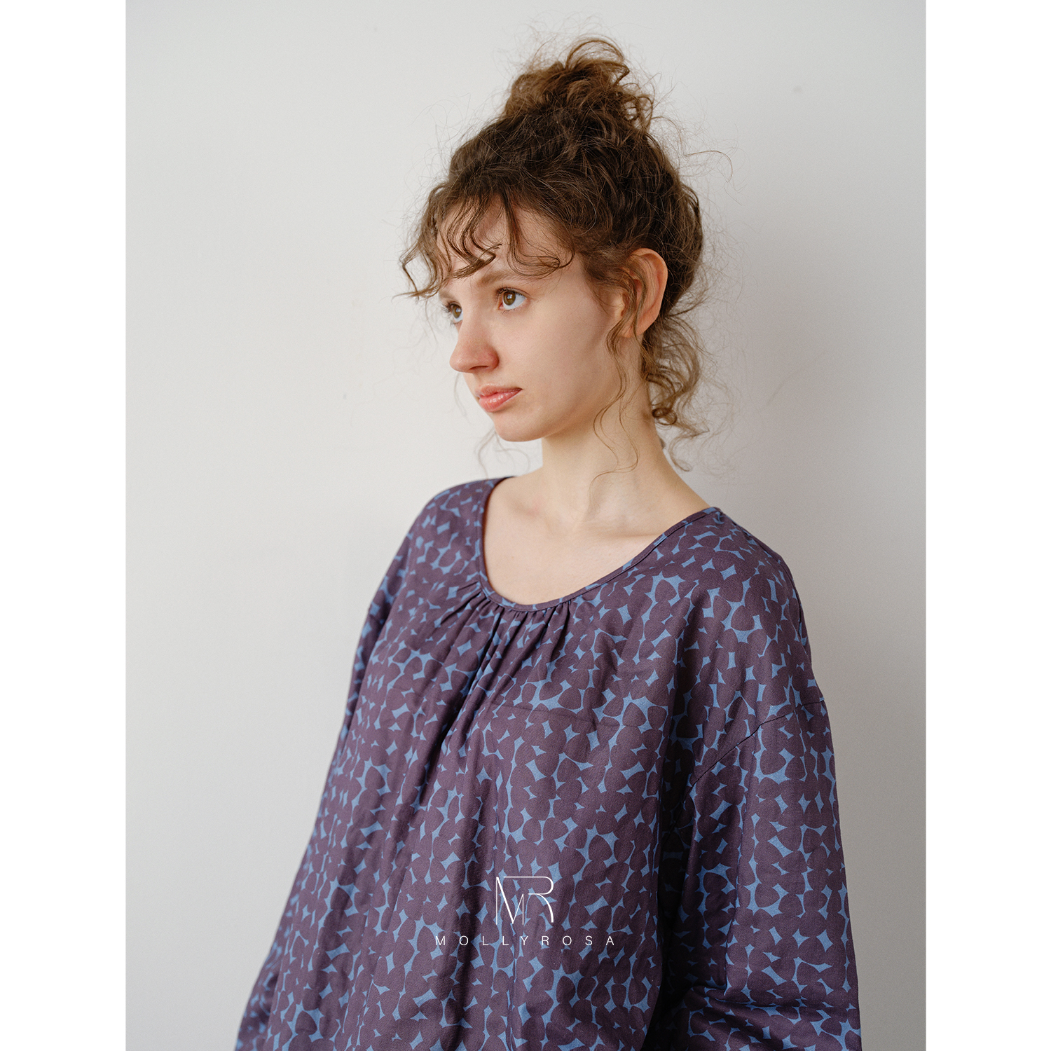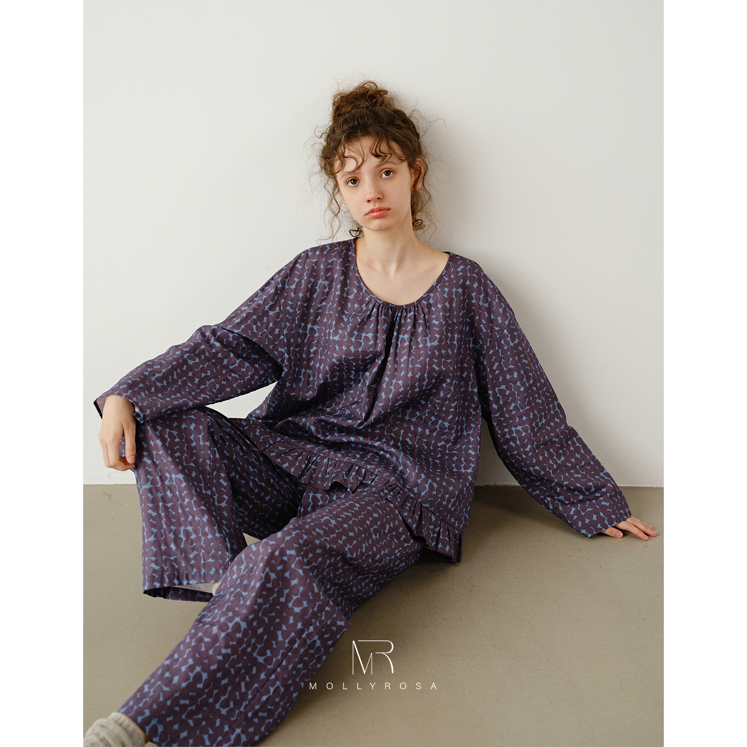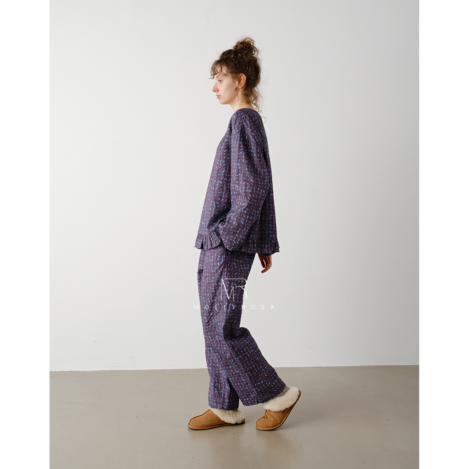 MOLLYROSA花影集·纯棉纱布花边秋冬碎花紫蓝家居服套装 睡衣 长袖