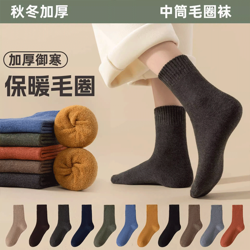 爆款 加厚保暖毛圈袜2025新款 毛巾底长袜女 中筒袜秋冬季 厚袜子男士