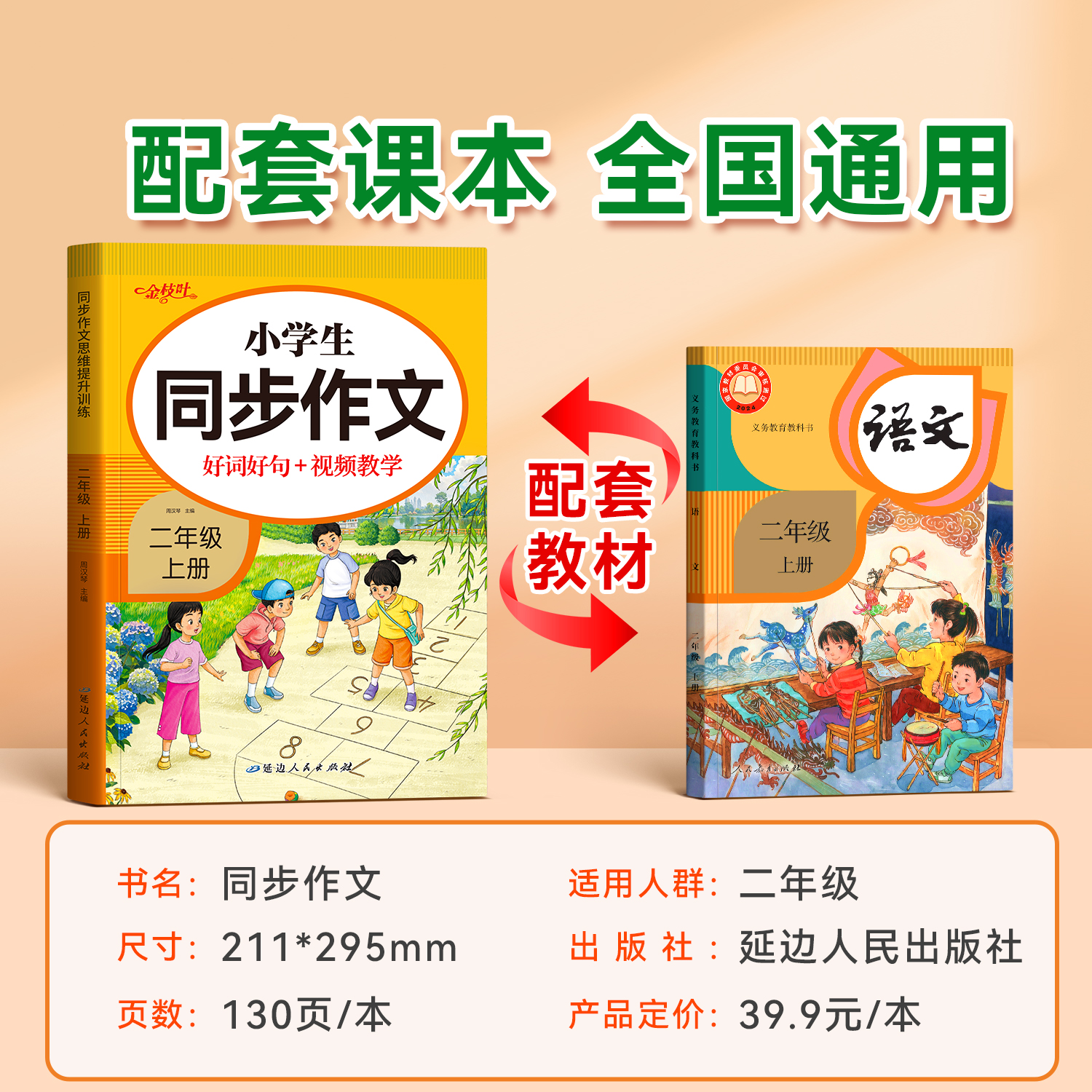 小学作文书小学生黄冈优秀作文大全2年级范文仿写素材全解语文满分作文下册开心全程指导 二年级上下册同步作文人教版 2025新版