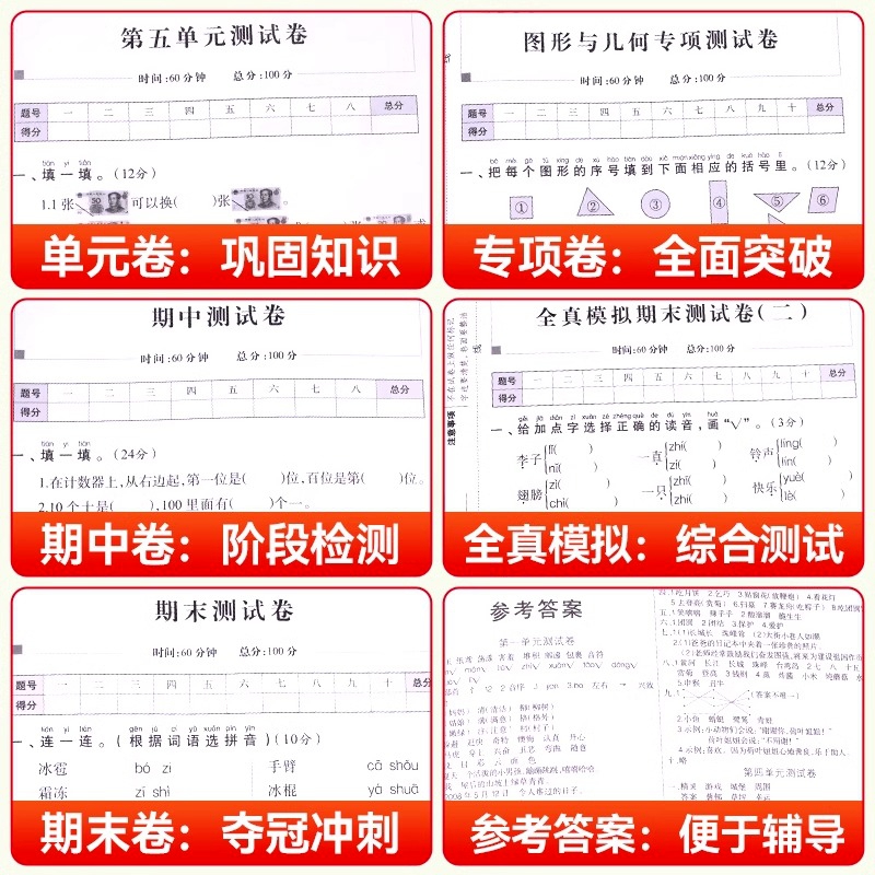 全优冲刺一百分测评卷人教版 期中期末专项检测卷一周一测100分专项练习册 语文数学英语测试卷全套一二三四五六年级上下册周末单元