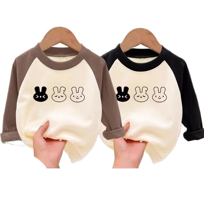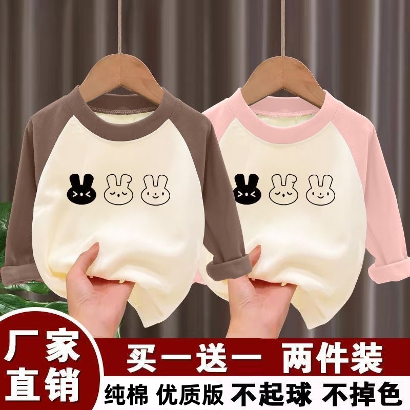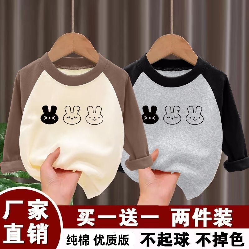 t恤上衣中小童内搭拼色体恤 长袖 纯棉春秋新款 男女童大童打底衫