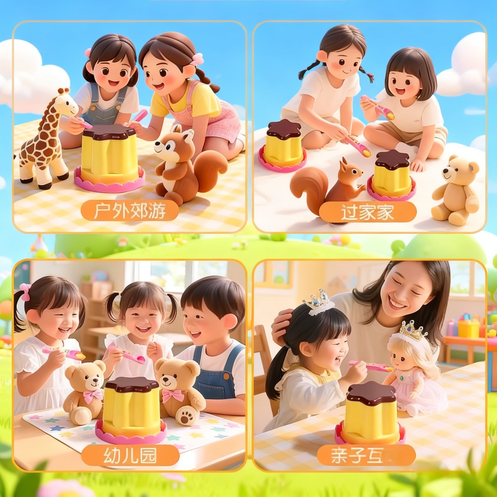 正版 兔子便当盒小熊便当拉面仿真过家家玩具 咪露布丁喂食玩具套装