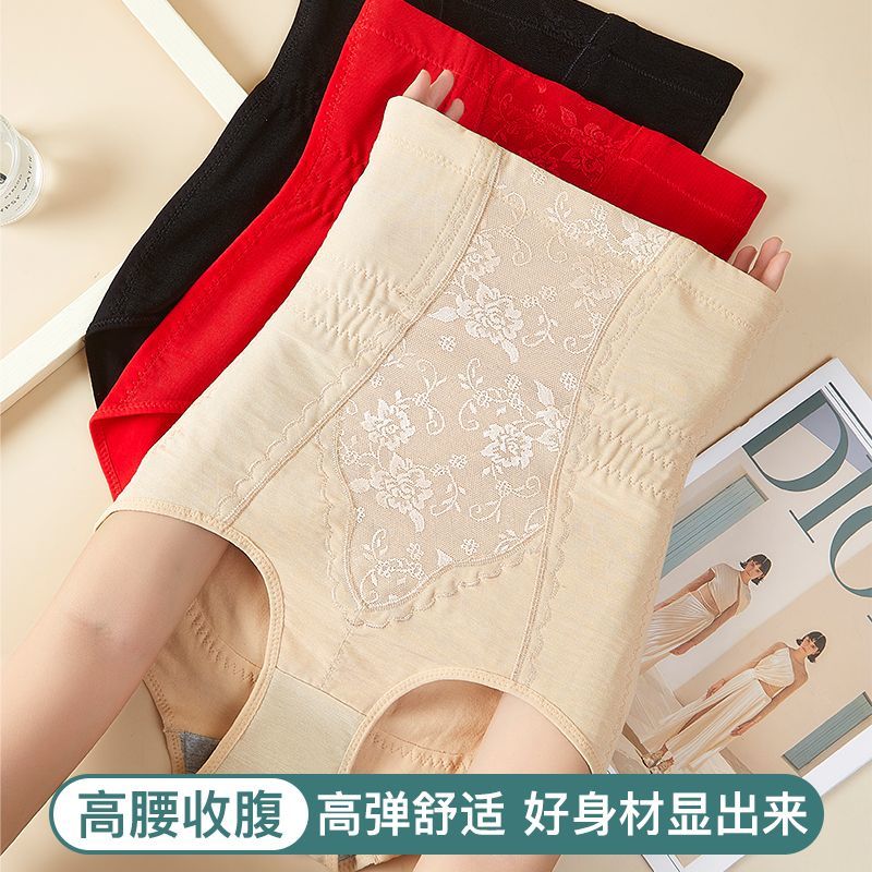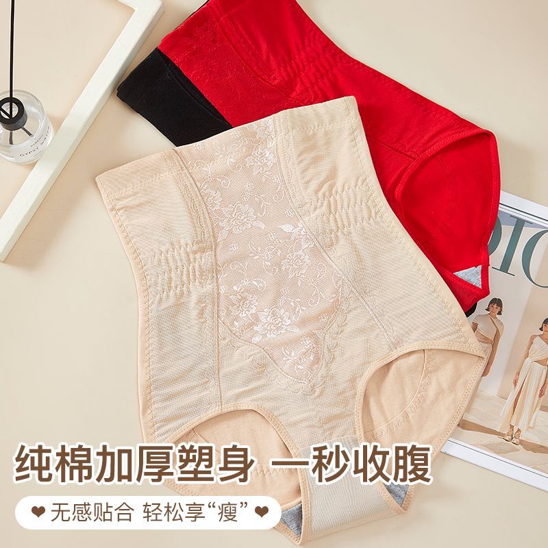 大码 强力束腹束腰提臀美体瘦身遮肚子塑形 本命年纯棉高腰收腹内裤