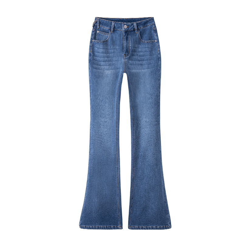 加绒保暖显瘦马蹄裤 one 秋冬季 女2025新款 more复古蓝微喇牛仔裤