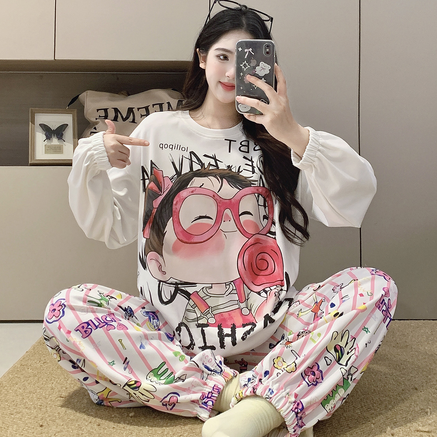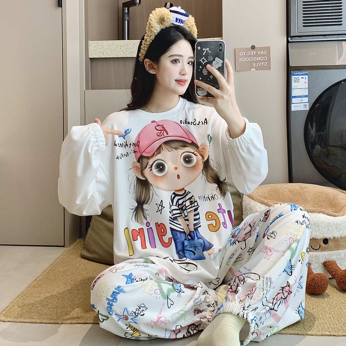 睡衣套装 纯棉春秋季 少女长袖 全棉高级感开衫 家居服 春秋款 芬腾新款