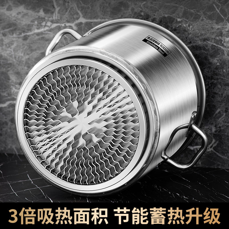 商用翅片节能汤桶316特厚不锈钢带盖圆桶大容量复底聚热专用桶