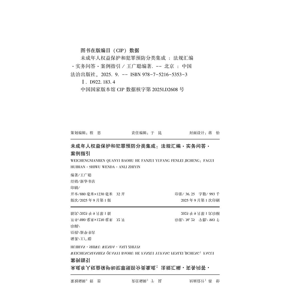 未成年人权益保护和犯罪预防分类集成:法规汇编·实务问答·案例指引 社 中国法治出版