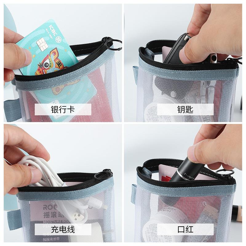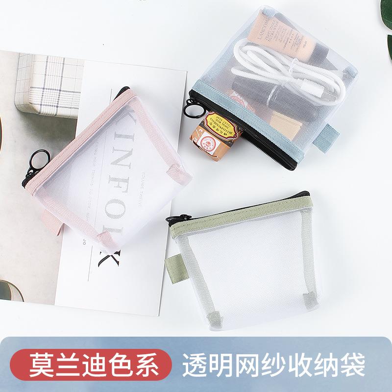 透明纯色网纱收纳袋便携小巧零钱化妆品收纳包钥匙卡片收纳整理包
