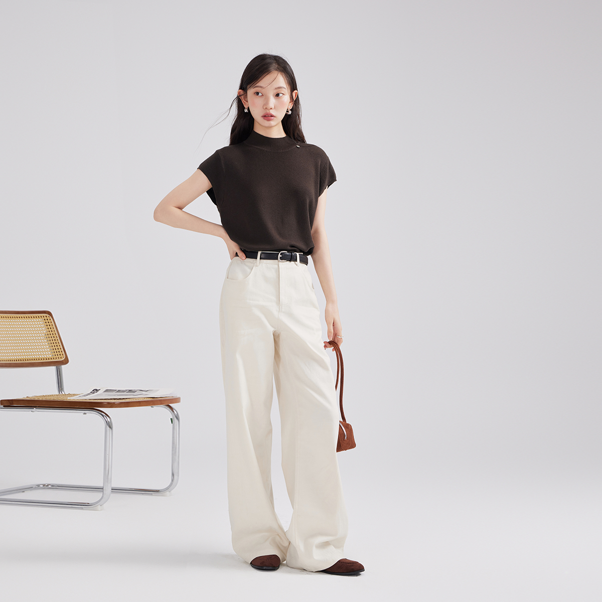 女2025春秋美拉德上衣高级感内搭打底衫 针织衫 more半高领短袖 one