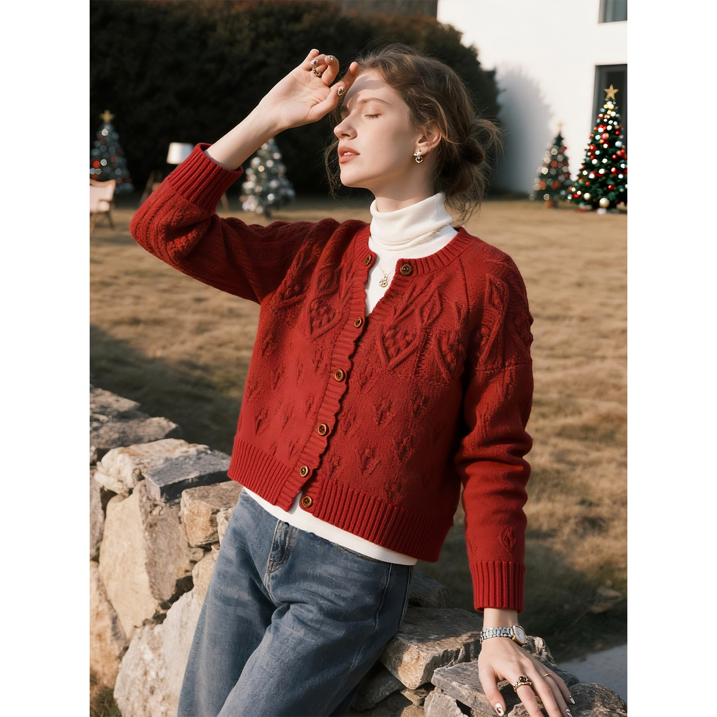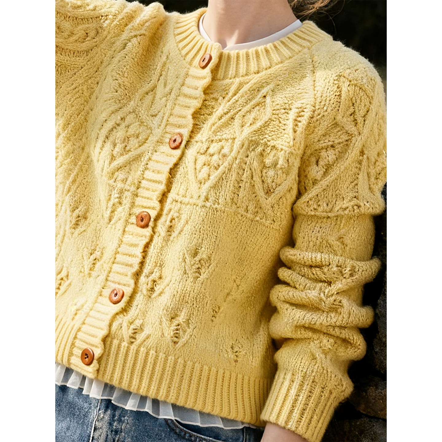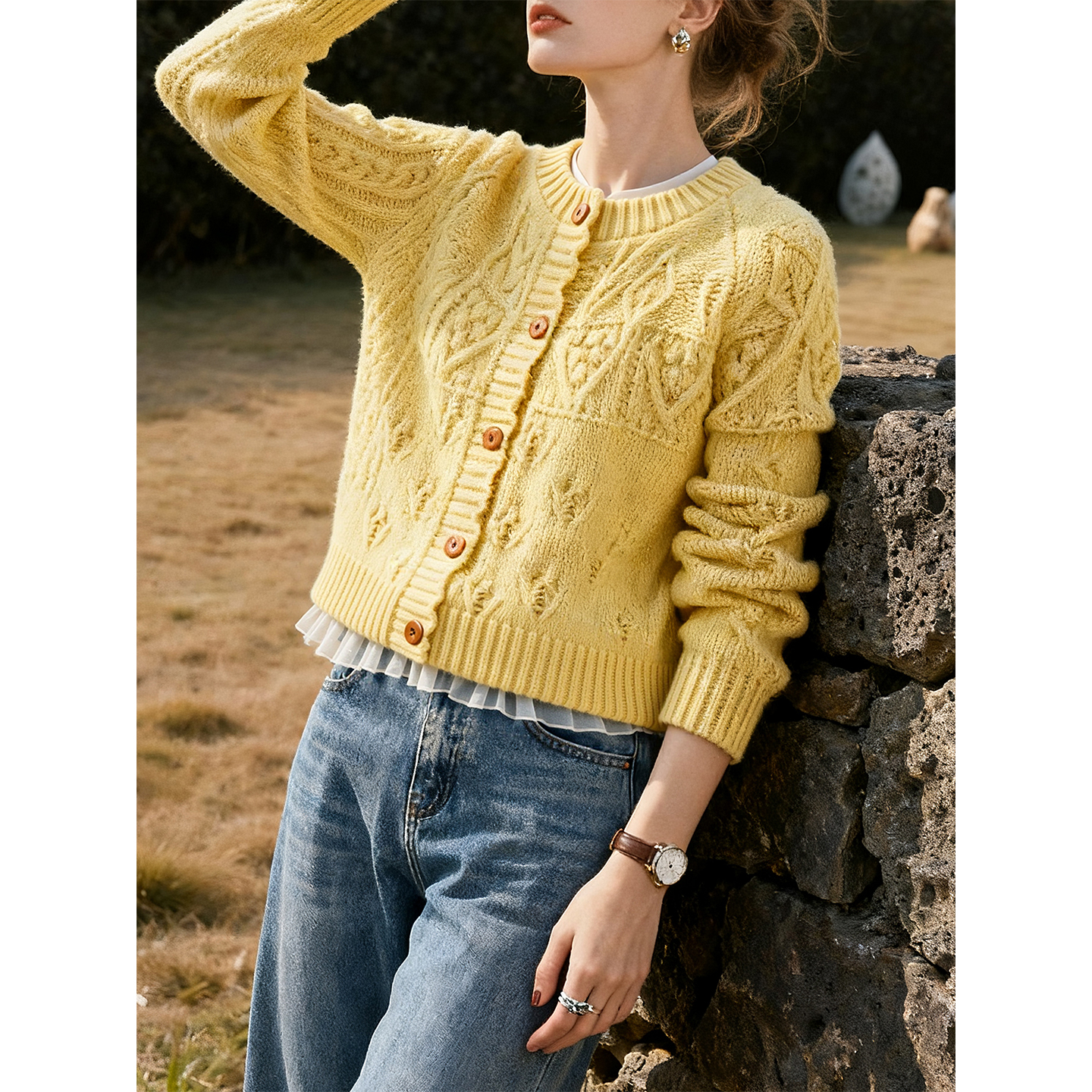 奶黄色圆领羊毛针织开衫 温柔风舒适软糯毛衣外套 女2025年秋冬新款