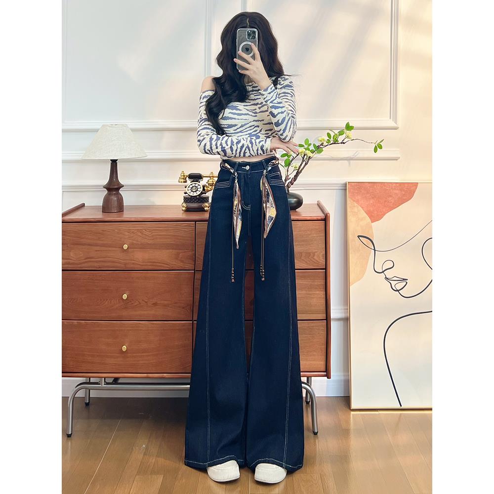 Moda牛仔裤 Vero 女25秋cleanfit高腰阔腿微喇叭四面弹 超模裤