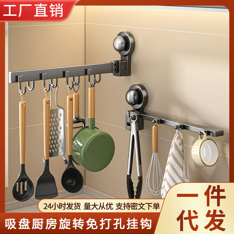 吸盘厨房挂钩免打孔挂杆家用多功能挂锅铲勺子铲子一体收纳置物架
