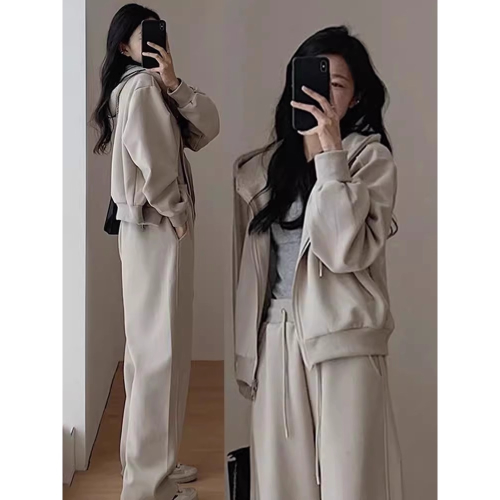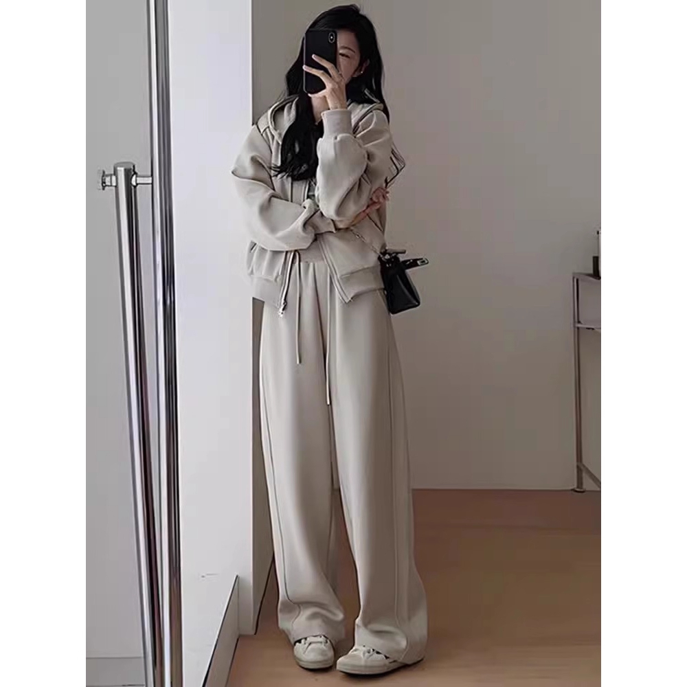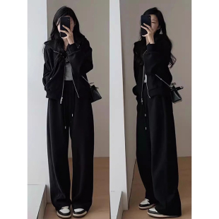 套装 时尚 秋季 新款 两件套 大码 时髦洋气连帽外套休闲阔腿裤 女装
