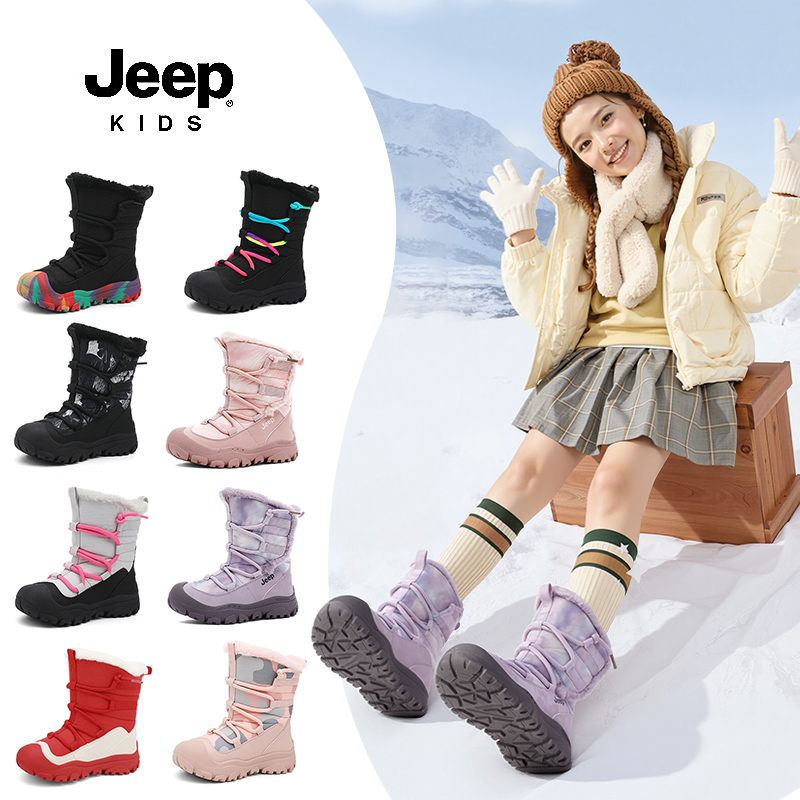 防水防滑男童雪地鞋 2025新款 加绒女童棉鞋 jeep儿童雪地靴棉靴冬季