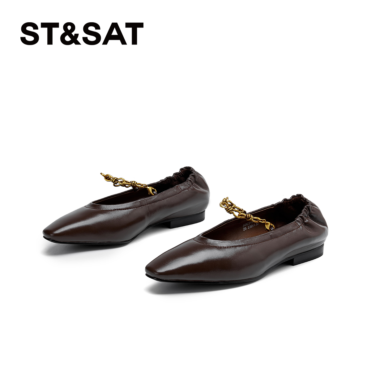 女 羊皮芭蕾玛丽珍单鞋 董洁董璇小酒窝同款 真美诗摩卡慕斯25秋新款