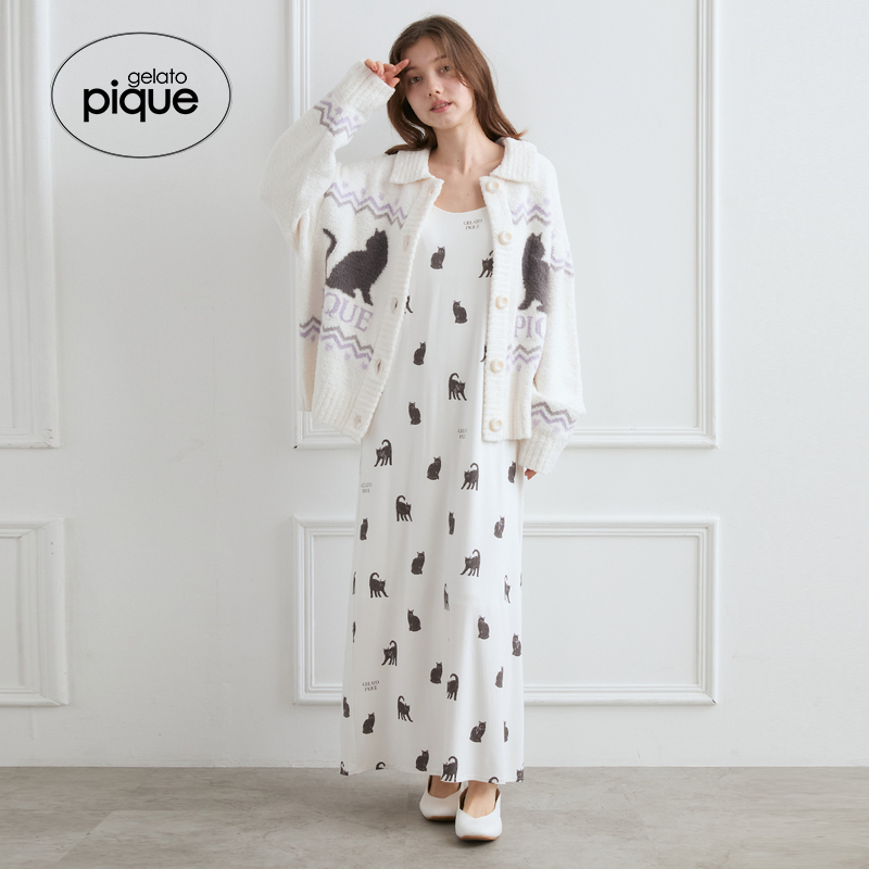 PWNT254031 女睡衣万圣节猫咪翻领针织开衫 gelato pique25秋冬新品