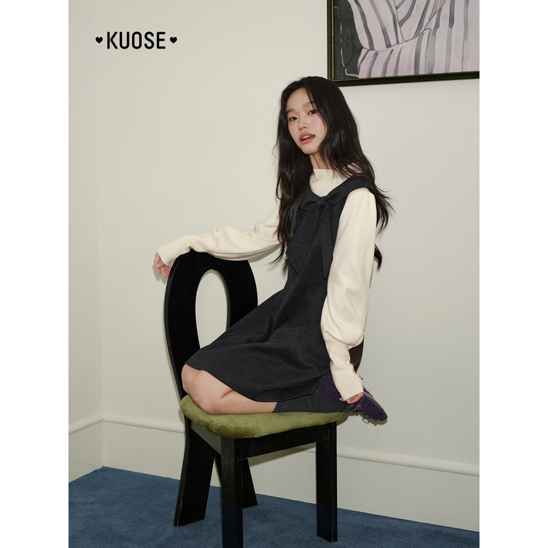 深灰色蝴蝶结披肩a字长裙 收腰连衣裙女2025秋冬新款 阔色法式 无袖