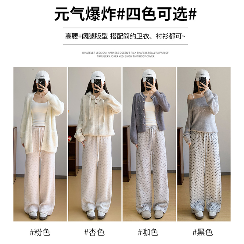 高腰宽松显瘦小个子垂感软糯针织糯米裤 2025新款 女秋季 波点阔腿裤