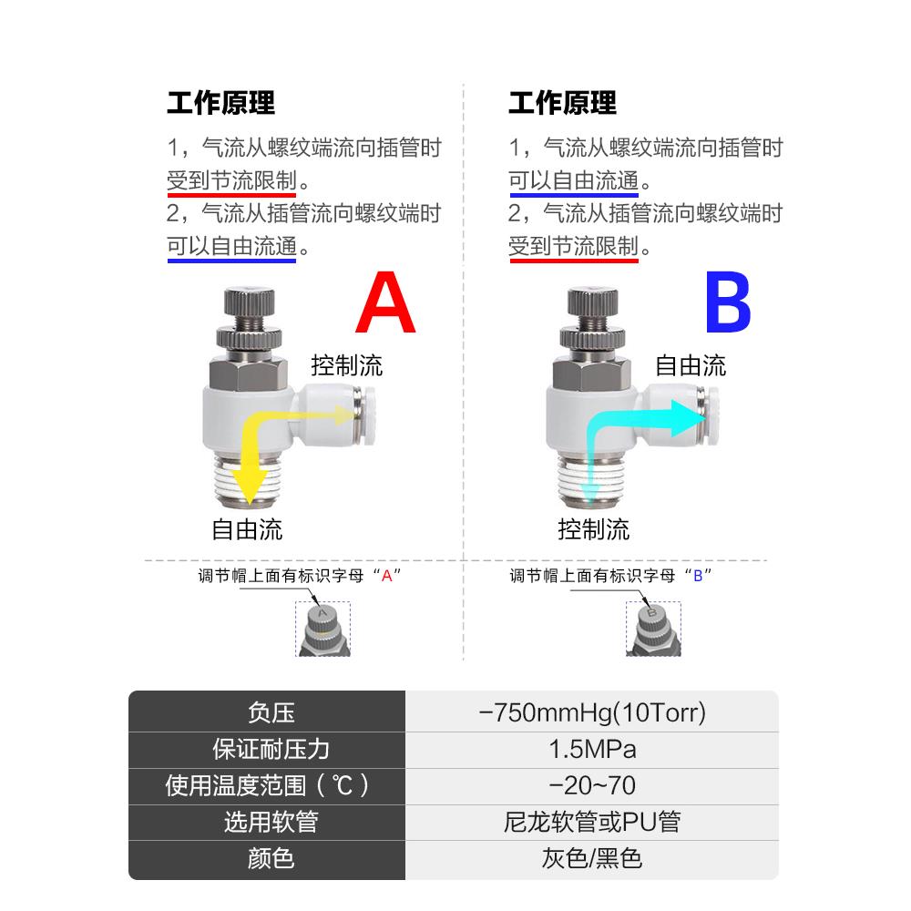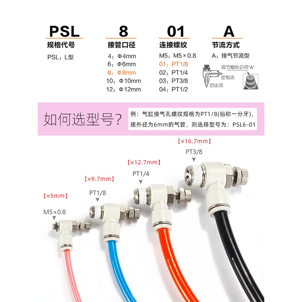 亚德客节流阀可调节气管接头气动气缸调速阀PSL4 0203A